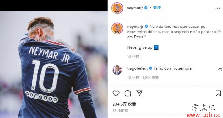 内马尔:“生活中总是充满荆棘,但重要的是保持信心,永不放弃!”