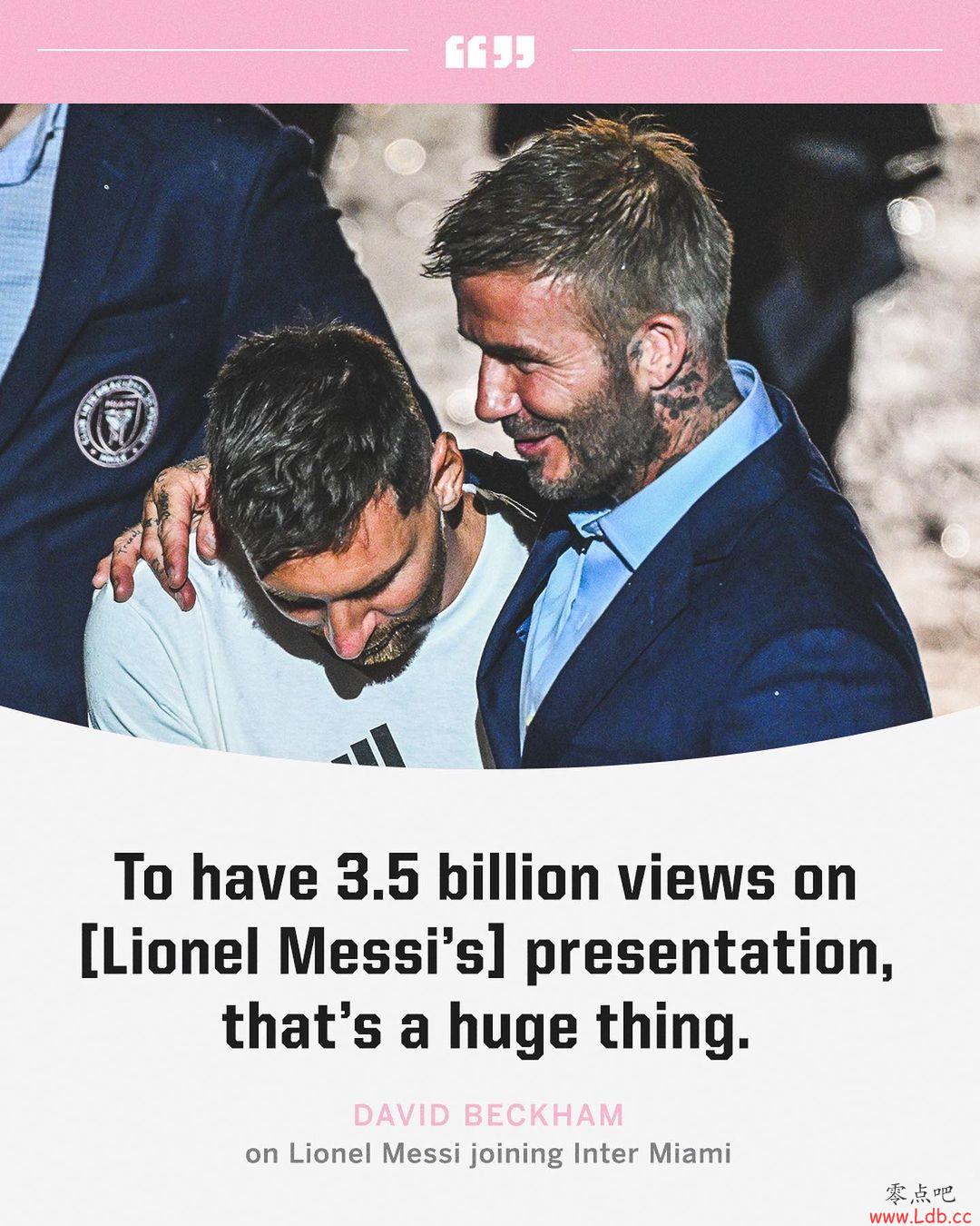 贝克汉姆:“梅西的亮相仪式观看数达到了35亿,这是一件大事。”