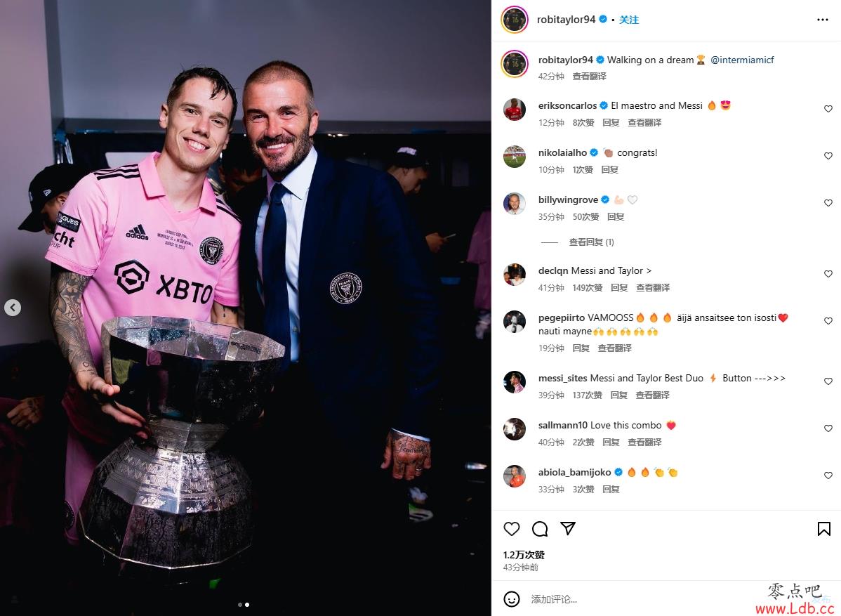 赛后迈阿密前锋罗伯特-泰勒晒出了与梅西、小贝的合照,配文:行走在梦想之上。