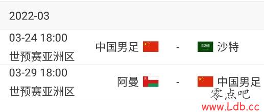 国足将在3月24日主场迎战沙特,3月29日客战阿曼。